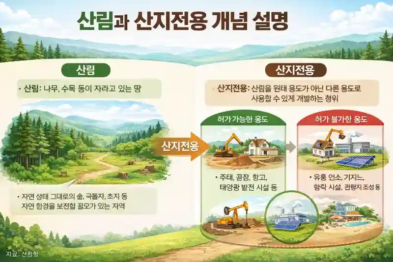 산지전용허가는 임야를 다른 용도로 전환하기 위해 반드시 거쳐야 하는 법적 절차예요. 주택, 공장, 창고, 농업 시설 등 다양한 사업 목적으로 산지를 활용하려면 산림청이나 지방자치단체의 허가를 받아야 하죠. 2026년 기준으로 대체산림자원조성비와 산지복구비 등 비용 부담이 크기 때문에 사전에 정확한 정보를 아는 게 중요해요.