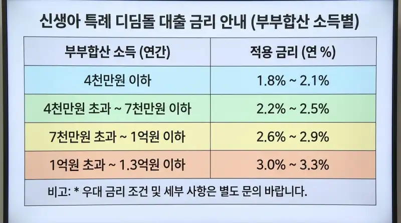 | 소득 기준 | 부부합산 1.3억 이하 (맞벌이 2억 이하) |