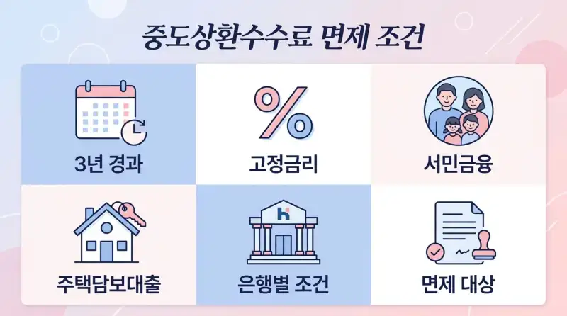 중도상환수수료를 한 푼도 안 내거나, 확 줄일 수 있는 조건을 정리해봤어요. 생각보다 해당되는 분이 많으니 꼭 체크해보세요.