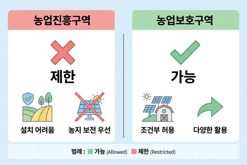 농지(전·답·과수원)에 태양광 — 진흥구역과 보호구역의 갈림길